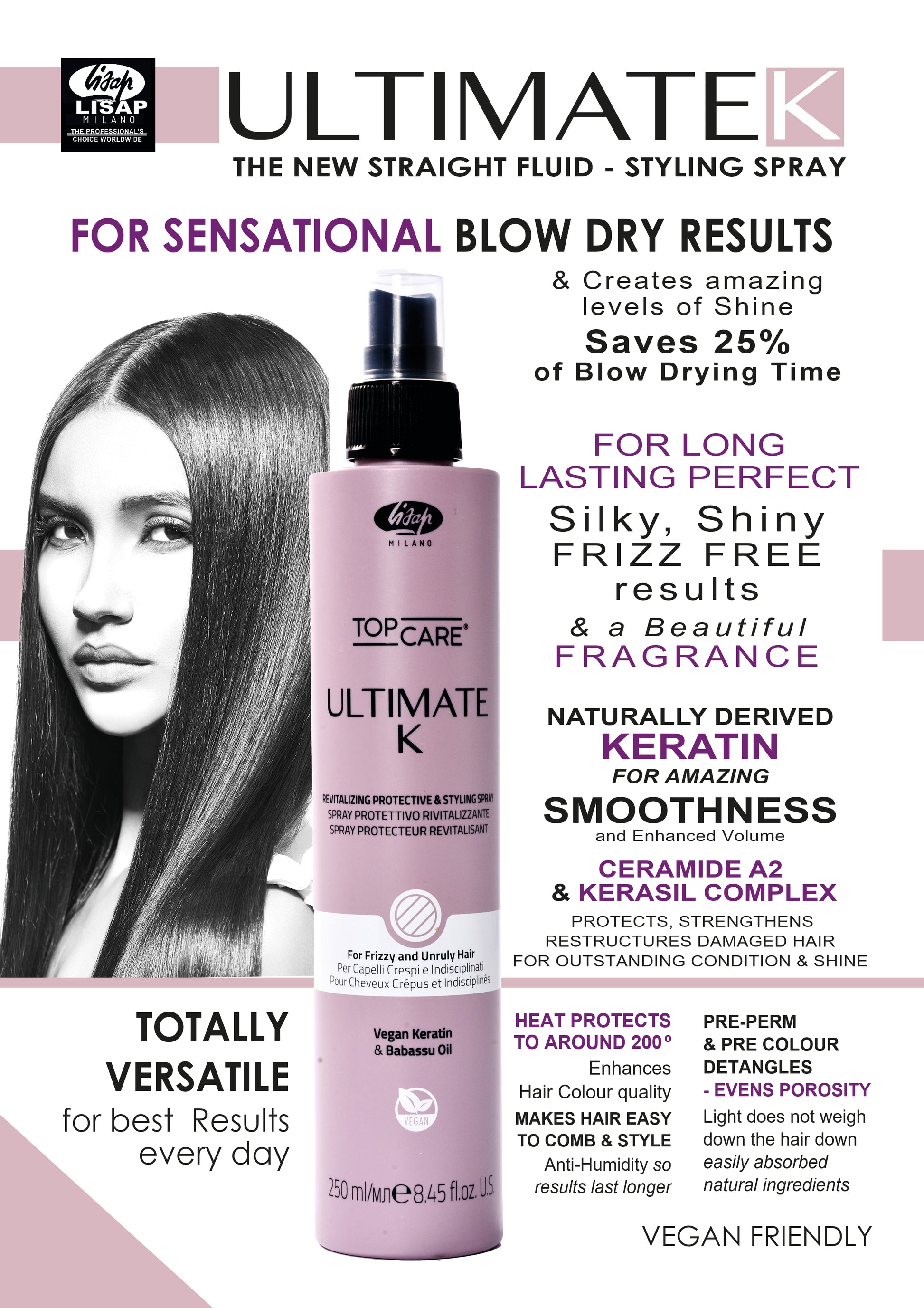 No-rinse heat protecting spray that seals the cuticles during heat styling and flat ironing. Easy, effective style, volume and frizz control. This has replaced the Ultimate Straight Fluid and Straight Fluid Plus products.